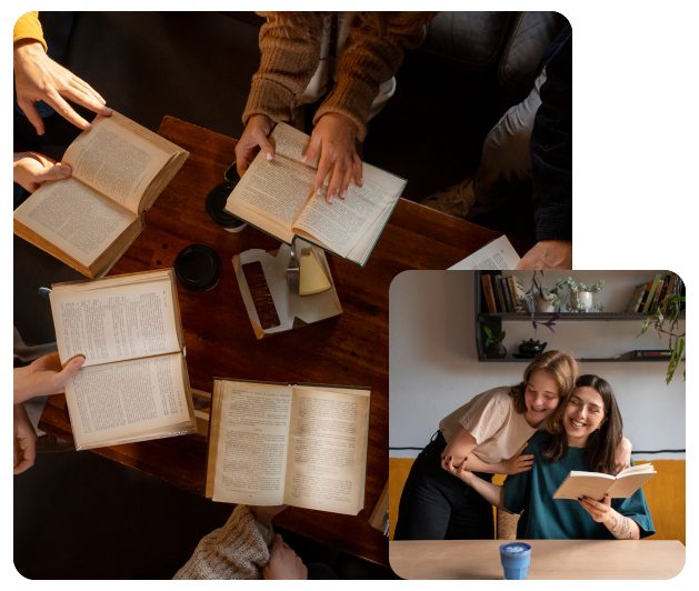 Encuentra clubes y personas que coinciden con tu estilo de lectura: desde novela histórica hasta ciencia ficción, desde quienes leen cada noche hasta quienes disfrutan un libro al mes. Haz match con lectores como tú y vive la experiencia de leer acompañado.